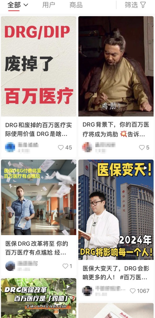 社交平台上部分关于DRG对百万医疗险影响的讨论截图